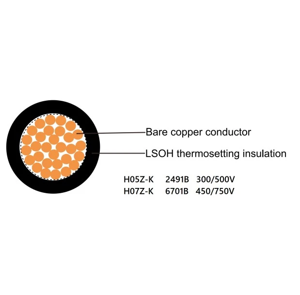 Na-rate na boltahe: H07Z-U, H07Z-R (6491B), H07Z-K (6701B), 450/750V