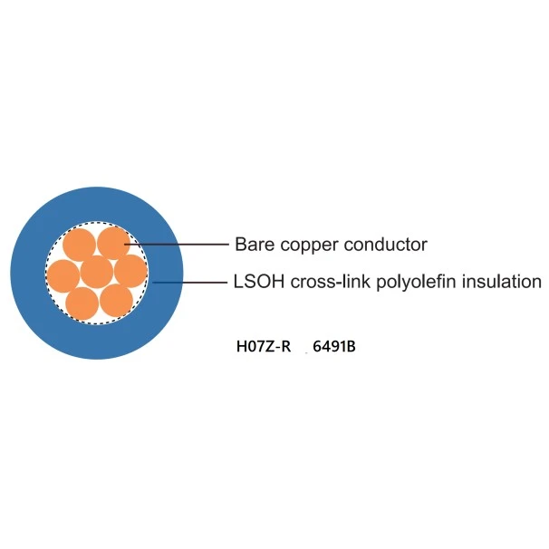 LSZH Insulated Single Core Cable na binubuo ng T1R copper conductor at LSOH crossing-link polyolefin (tinatawag ding LSOH thermosetting) insulation.
